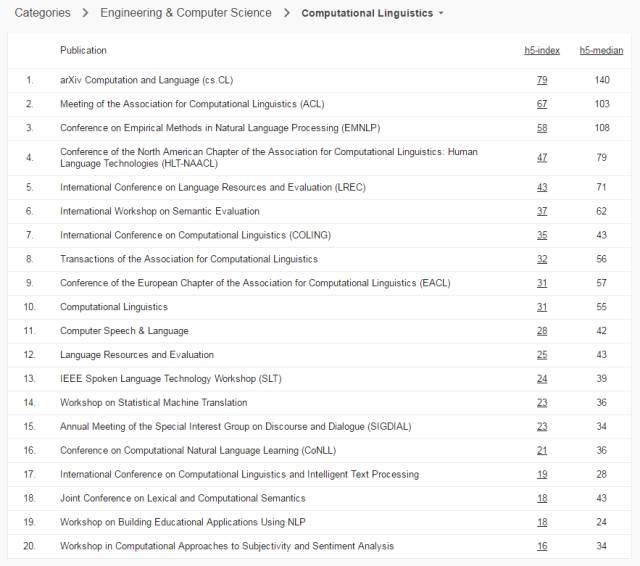 在自然(Google scholar中的分类是Computational Linguistics)领域,排名第一的是 arXiv 的“计算机与语言”板块(cs.CL)。