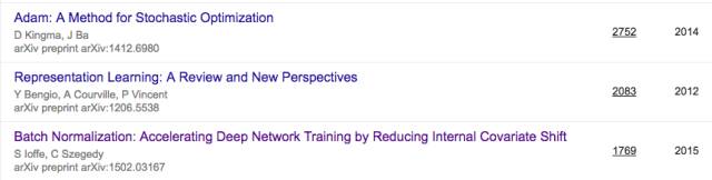 第一名是阿姆斯特丹大学、Open AI 研究员 Diederik P. Kingma 和多伦多大学的Jimmy Lei Ba2014年合作的论文:《 Adam:A Method for Stochastic Optimization》,引用次数多达 2752 次。