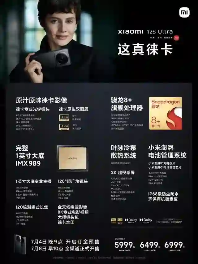 7月4日,小米正式发布了新一代小米12S系列手机,其中 12S、12S Pro 和12S Ultra三种机型的起步价分别为3999元、4699元、5999元。今年2月,小米CEO雷军曾表示,小米要在三年内拿下国产高端手机市场份额第一。去年,国内售价五千元及以上的高端手机市场中,苹果占据了75 %的市场份额;小米占2.97 %,排名第三。(晚点财经)