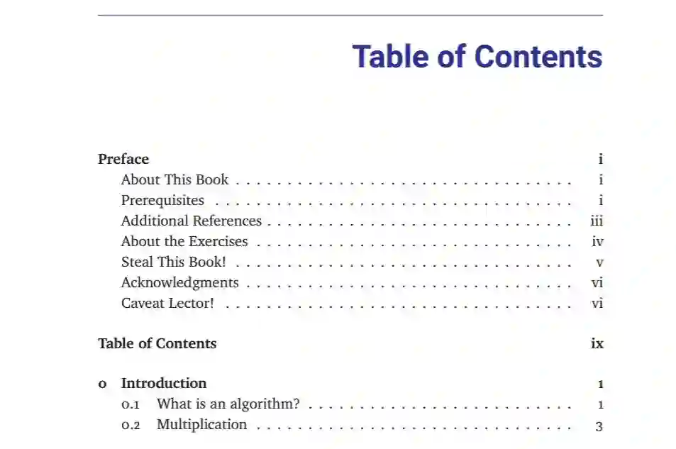 Erickson 教授在伊利诺伊州教授的算法课程有两个重要的先决条件:离散数学课程和基础数据结构课程。因此,这本教科书可能不适合大多数学生作为数据结构和算法的第一门课程。特别是,Erickson 教授假设至少熟悉以下特定主题:离散数学、证明技巧、迭代编程概念、基础抽象数据类型、基础数据结构、基础算法、基本算法分析、数学能力成熟度。