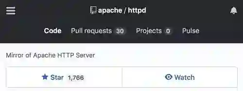 不要误解我的意思,我很喜欢 Vue —— 最近我使用它的频率远远超过了 React 的频率,但一个项目在 github 上的 star 数量更多的是衡量它的“流行”程度,而不是实际使用情况。下面举一个明显的例子,我们拿比较流行的 Apache 服务器 httpd 和一个相对来说意义没那么重大的 JavaScript 项目 colors.js 来对比: