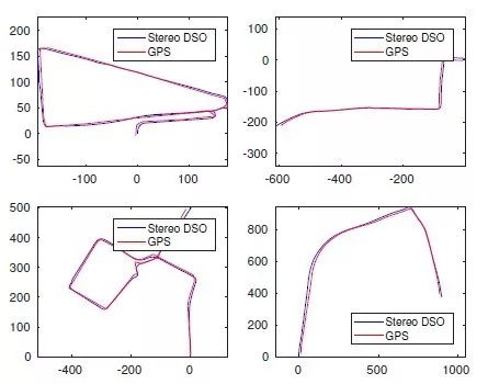 图6 在Cityscapes Frankfurt上的估计轨迹,这些序列是通过将长序列分成5000到6000帧的小的序列间隔。