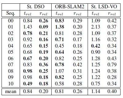 图2 KITTI上精度比较,trel为平移的均方根误差(%),rrel为旋转的均方根误差(degree per 100m).最好的结果由粗体标出。