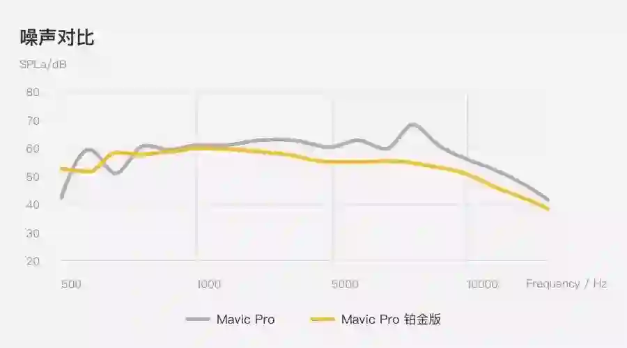 与Mavic Pro相比,Mavic Pro铂金版的续航时间增加了11%,由27分钟延长至30分钟;在一米距离外,声级计测量得出的整体噪声下降4分贝,相当于噪声功率降低60%。无论是起飞一刻还是加速瞬间,用户均可静心飞行,享受安静而畅快的飞行体验。
