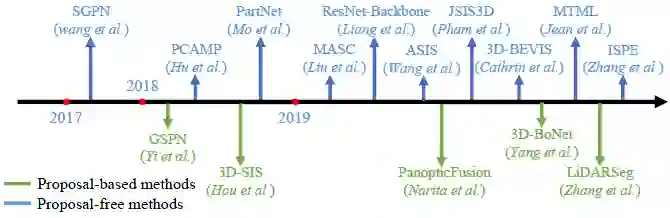 图11:有代表性的三维点云实例分割方法的年代概述。