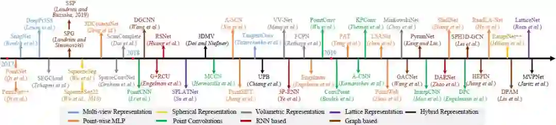 图8:按时间顺序概述了一些最相关的基于深度学习的点云语义分割方法。