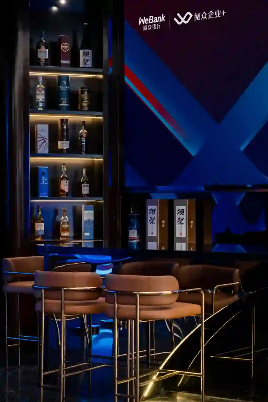 值得一提的是,在这个空间中,微众银行将数字技术融入产品及服务创新,为企业家提供的是更具创意的多元体验,不仅能为客户提供1v1出行服务,还提供免费广告位、微醺mini吧等优质体验。