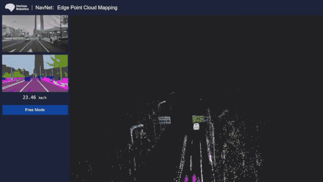 NavNet将点云建图过程全部在边缘进行,输出建立好的局部三维地图,进而用以与已有高精地图进行匹配获取定位,同时可在无地图区域进行自动建图。当前,地平线NavNet针对众包场景,利用深度学习和SLAM技术进行道路场景的语义三维重建,支持16大类地图元素的重建、识别、矢量化。并且在仅使用单目摄像头的情况下,便能够实现重建结果与全局地图的匹配定位和众包建图,并根据实时重建的局部地图与云端高精地图进行关联优化,持续提升高精地图的质量。