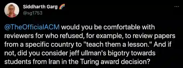 质疑者认为:「尽管 Jeff Ullman 在领域内的贡献是不可否认的,但我认为计算机科学家们还应该意识到他对这一社区造成的损害,尤其是在多样性、公平性和包容性方面。」