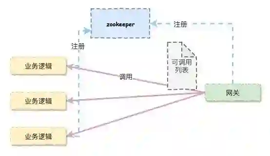 在使用 ZK 作为注册中心时,故障的发现是由 ZK 去进行发现,业务逻辑层通过 Watch 的心跳机制将自己注册到 ZK 上,网关对 ZK 进行订阅就可以知道有多少可以调用的列表。