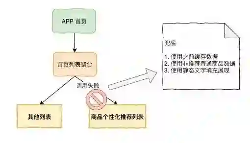 这时候可以选择获取之前没有失败接口的缓存数据,如果没有则可以获取通用商品不用个性化推荐,如果也没有可以读取一些静态文字进行展示。