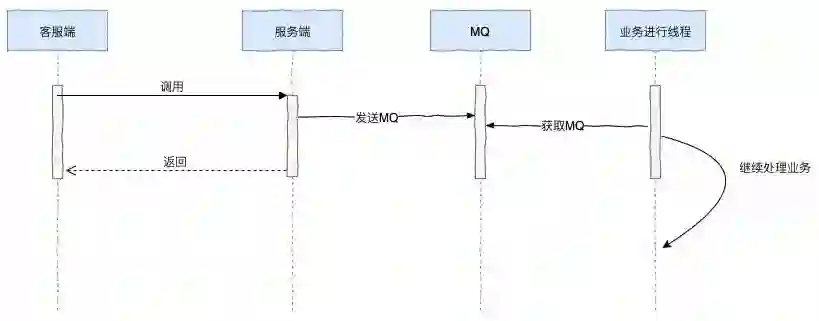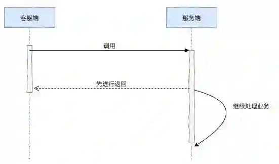 服务端接收到请求后,服务端先回应答给客户端,再继续处理业务逻辑。