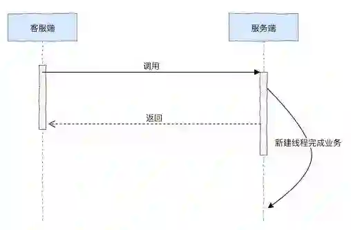 服务端接收到请求后,创建新的线程处理业务逻辑,服务端先回应答给客户端。