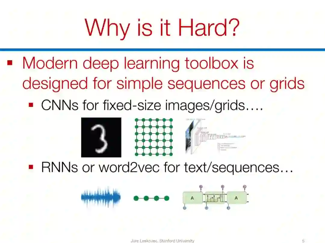 新智元今天为大家推荐一份PPT综述,作者是斯坦福大学的多位博士后和博士生。这篇综述由基于神经网络和图网络的任务入手,对图神经网络的建立、架构、训练模式和模型特征等方面做了系统的梳理和介绍,并在最后给出了几个产业界和学术界的应用实例。