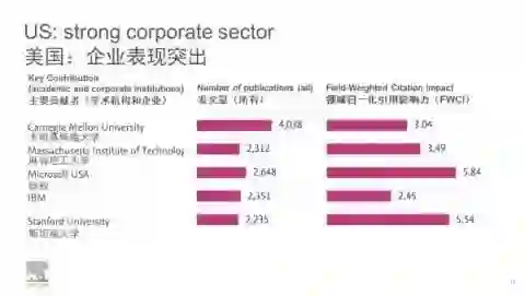 "微软、IBM进入前五名,谷歌势头迅猛,未来可期,这充分反映美国人工智能领域学术界和产业界间的交流十分活跃。"中国科学技术信息研究所政策与战略研究中心副主任徐峰表示。