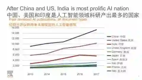 近几年,科技领域最火的词莫过于人工智能,在激烈的全球竞争中,谁能拔得头筹?1月11日,爱思唯尔集团召开发布会,在中国首次解读其最新发布的人工智能研究报告,报告显示,全球范围内,人工智能研究在过去五年(2013-2017)以每年接近13%的速度快速增长,中国、美国和印度成为人工智能领域科研产出最多的国家。