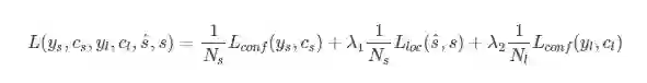 SegLink所使用的目标函数由三个部分构成,是否是text的二类分类的softmax损失,box的smooth L1 regression损失,是否link的二类的softmax损失。λ1和λ2控制权重,最后都设为1。