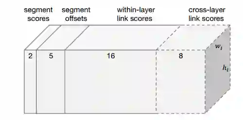 同层(within-layer)的每个segment的link的分数,表示该方向有link还是没link(2分类问题),而一个segment有八邻域所以有八个方向,参数一共有2×8=16