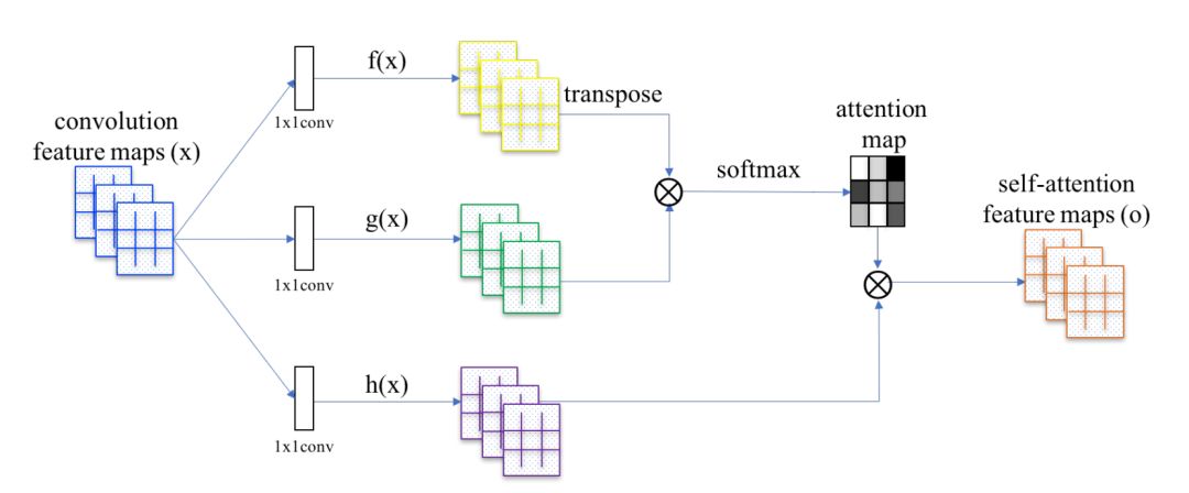 可以把 self attention 看成是 feature map 和它自身的转置相乘,让任意两个位置的像素直接发生关系,这样就可以学习到任意两个像素之间的依赖关系,从而得到全局特征了。看论文时会被它复杂的符号迷惑,但是一看代码就发现其实是很 naive 的操作。