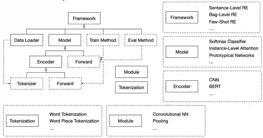 现在这款工具包已经悄悄更新到了 2.0 版本!在原版 TensorFlow 实现的基础上,不仅采用了现在大热的 PyTorch 作为基础,设计了更加模块化的框架,还囊括了句子级别关系抽取、远监督关系抽取和少次学习关系抽取等丰富设定,可以说是加量不加价,值得你拥有!