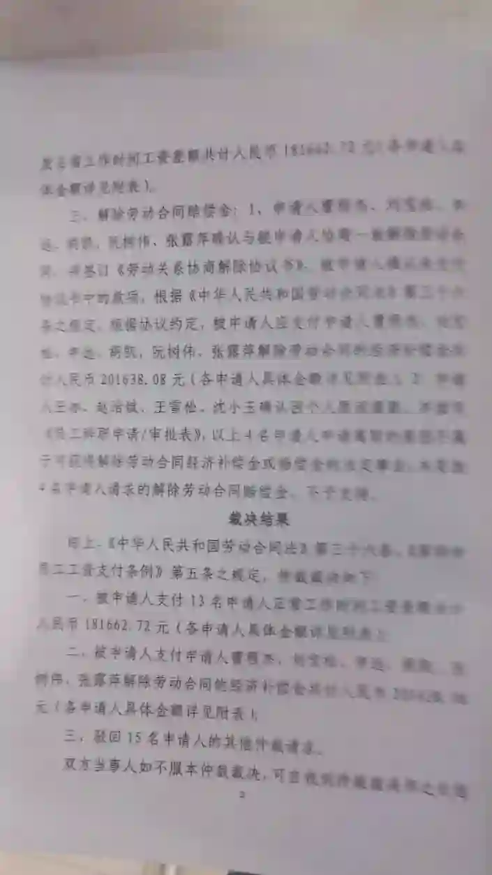 “利润有一部分是我们的血汗钱!”来自星美公司总部、生活业务板块的吴磊,看到星美的半年报,情绪激动。4月份吴磊被离职,他连同14个同事申请了集体仲裁。7月23日,深圳劳动仲裁委出具仲裁书,星美需支付他们15人共计18万的拖欠工资和20万的赔偿金。7月30日,仲裁书送达,15天上诉期眼看着快要过去,星美却没有丝毫动静。