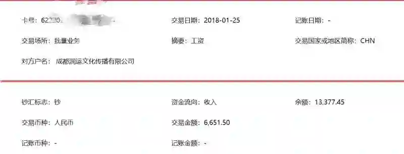 顾源给小娱发了两张工资转账截图,3月份的工资由“深圳星美汇商贸有限公司”转账,标注为“汇划”;1月份工资由“成都润运文化有限公司”拨付,标注为“工资”。顾源的说法得到了王硕、赵飞燕等人的印证——即星美发工资的账号总在变。