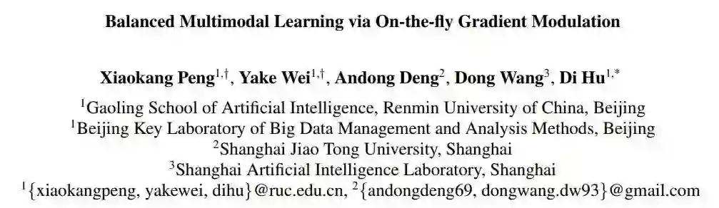 标题:Balanced Multimodal Learning via On-the-fly Gradient Modulation