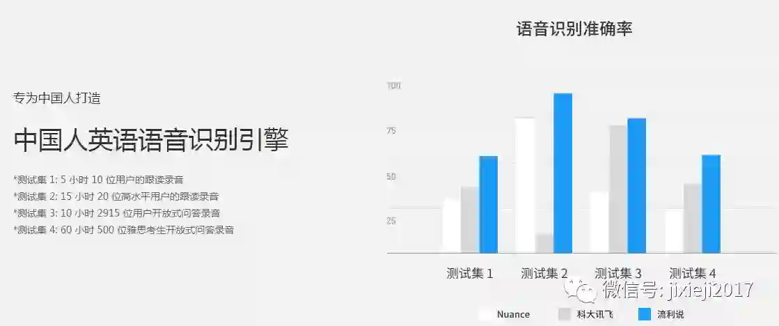 利用英语流利说收集到的目前最大的中国人说英语的数据库,英语流利说打造了一个可能是全世界强大的识别中式英语的识别引擎。CTO 胡哲人自信地表示,「和 Nuance、Google、科大讯飞等前辈相比,我们在这个领域比他们做得都要更好。」