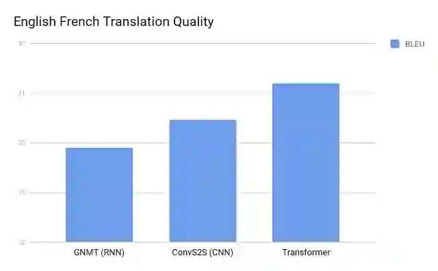 我们的论文表明,在学术性的英语转德语与英语转法语翻译基准方面,Transformer 性能优于循环与卷积神经网络。除却更高的翻译质量,Transformer 需要更少的训练算力,更适合现代机器学习硬件,并且把训练速度提升了一个数量级。