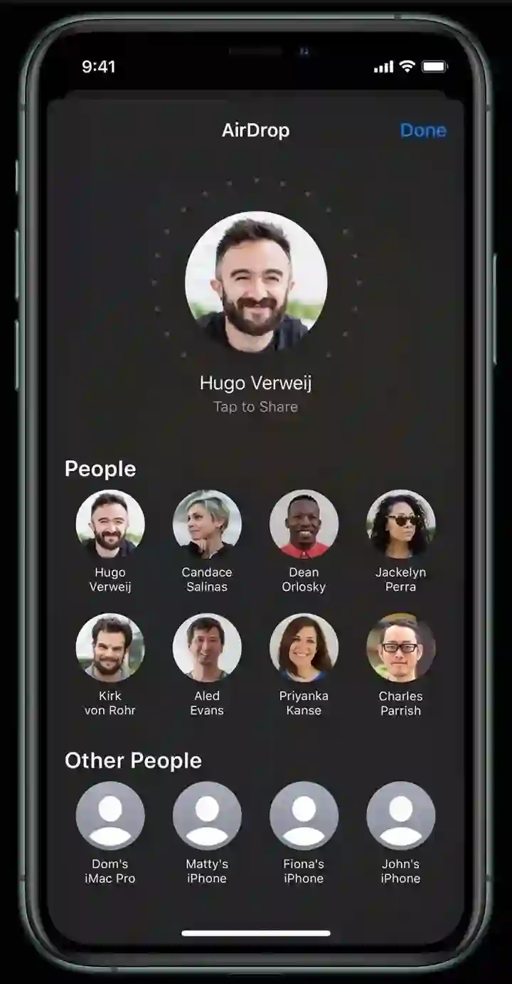 现在,苹果已公布的唯一采用了U1精确位置的功能就是判断另一台iPhone 11是否在附近(也许还能判断是否指向你的手机),然后把它放在AirDrop界面的最顶部。