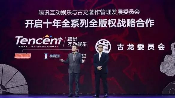 还值得关注的是,程武今日代表腾讯互动娱乐宣布与古龙著作管理发展委员会,达成古龙作品十年全系列、全版权的战略合作。这意味着腾讯影业、腾讯动漫、腾讯游戏在未来 10 年可以对古龙作品进行全产业链开发。