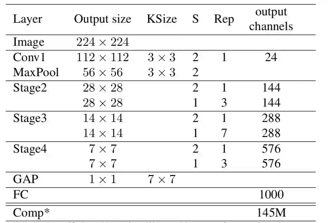 表 7. 高效 Xception,类似 Light-Head R-CNN 检测器的架构。Comp* 指网络的复杂度(浮点)。