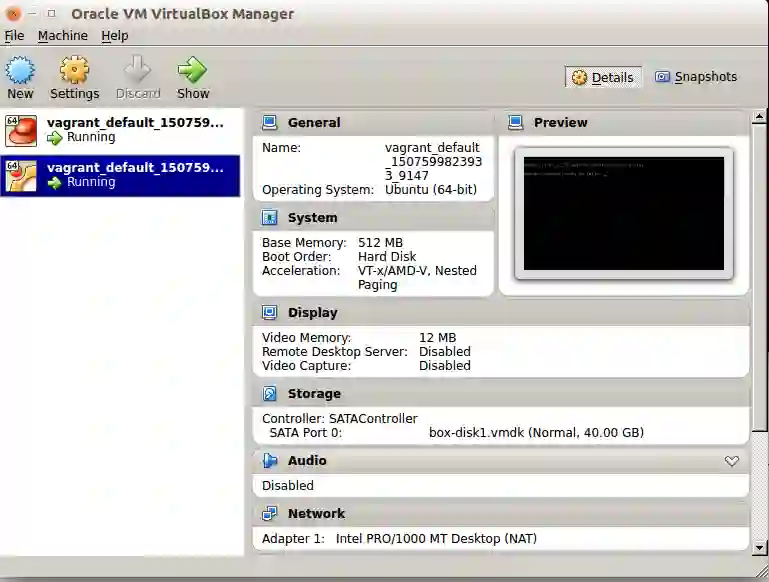 如果想看创建的 vagrant OS,可以打开 VirtualBox,然后你就能在 VirtualBox 创建的虚拟机中找到它了。 如果在 VirtualBox 中没有找到, 使用 sudo 权限打开 virtualbox, 然后应该就能看到了。