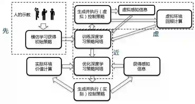 一个融合了“虚、先、近”三种策略的机器人运动控制增强学习框架
