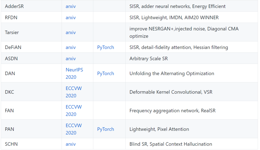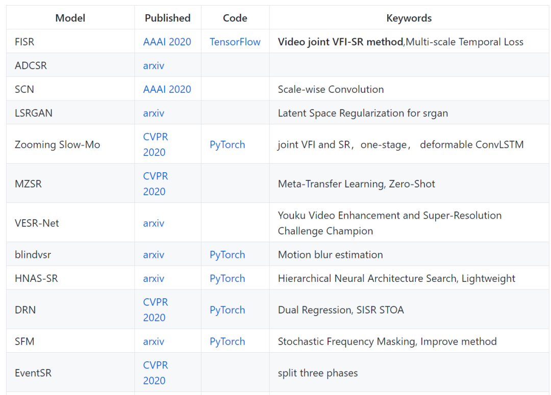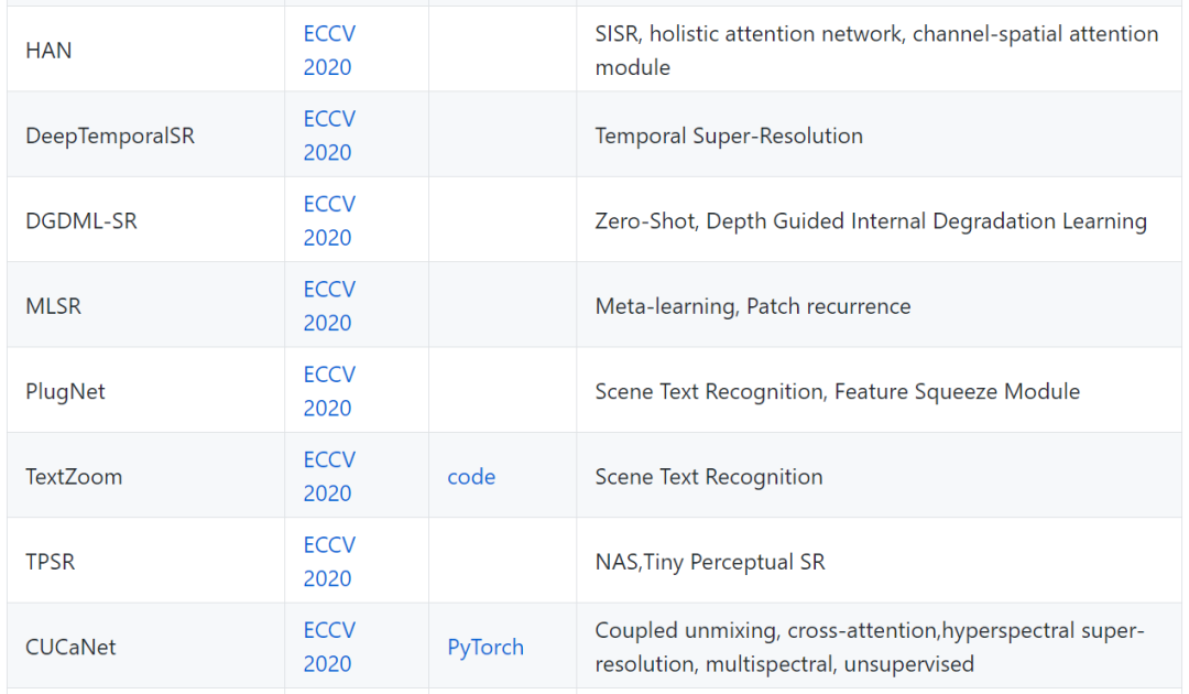 AAAI 2020、CVPR 2020、ECCV 2020、NeurIPS 2020和最新的SR论文都包含了