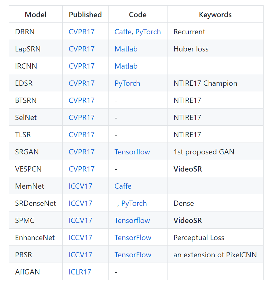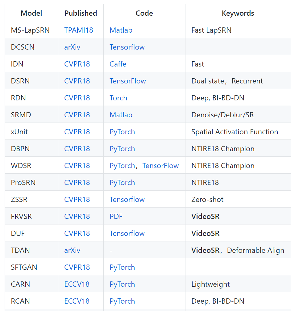 这里算是致敬!github上其实有很多不错的超分辨率SR合集项目,比如: