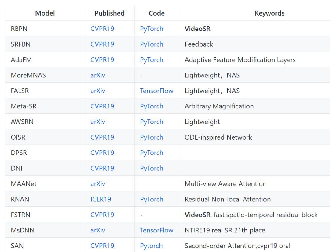 不少顶会上的SR论文都是基于下面的优秀开源项目所开发的,