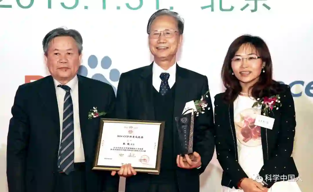 2015年,张钹(中)获得中国计算机学会(CCF)终身成就奖