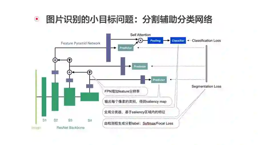 为应对在图片中出现小范围问题区域的挑战,今日头条还设计了分割辅助分类网络。