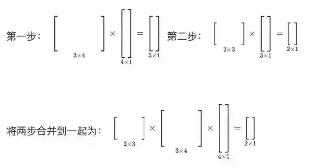 通过以上形式,我们可以发现如果将一个列向量经过多次线性转换,他的顺序应该是从右至左的顺序。这就是标准的线性代数书中所讲到的连续线性变换的形式,从右至左也是线性代数数学家习惯的顺序。