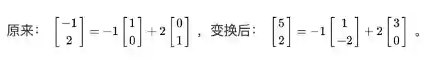 这其中的区别就是基向量不一样了,而线性组合的系数 -1 与 2 保持固定不变。