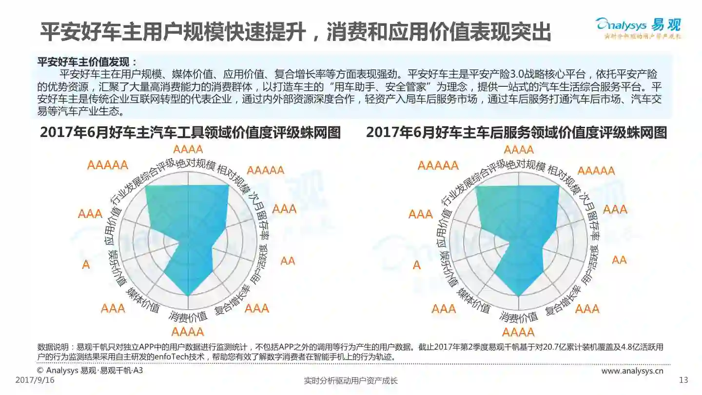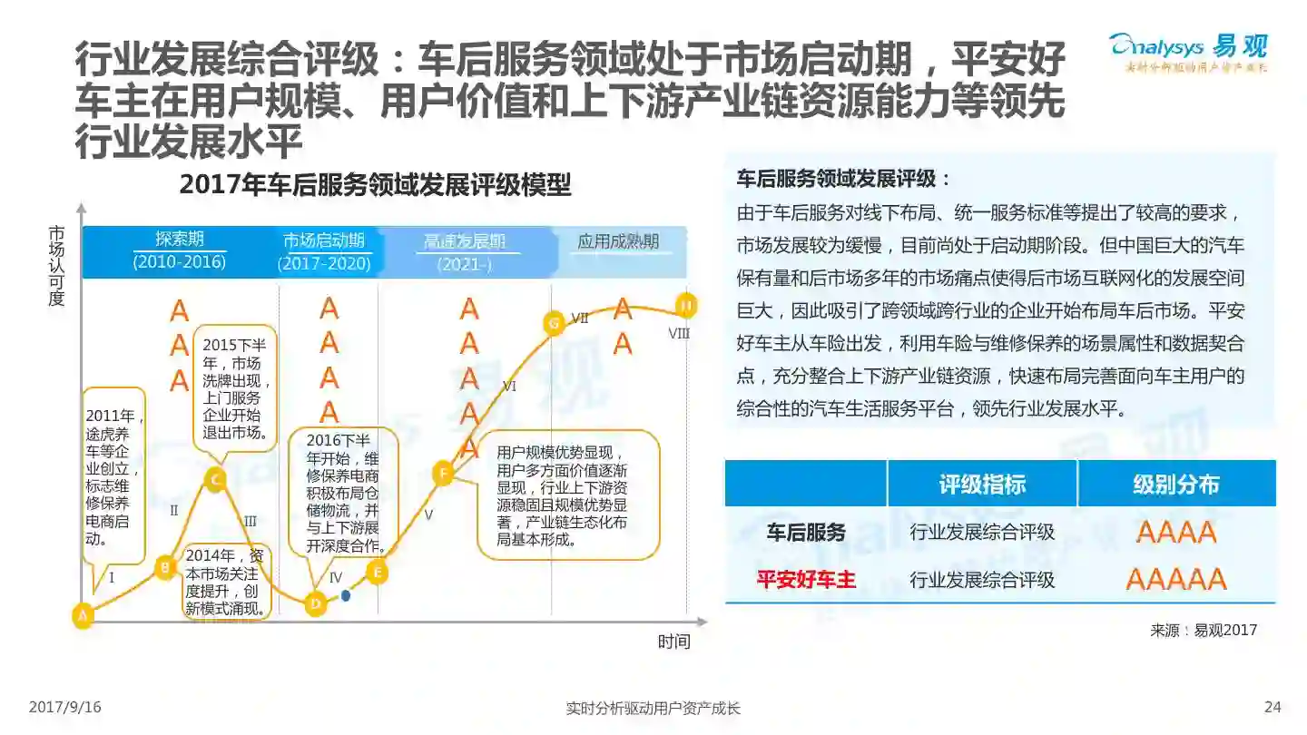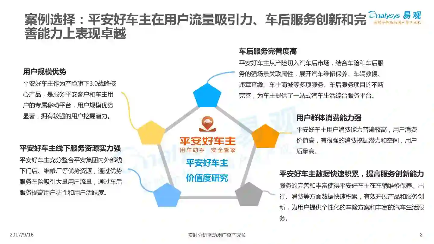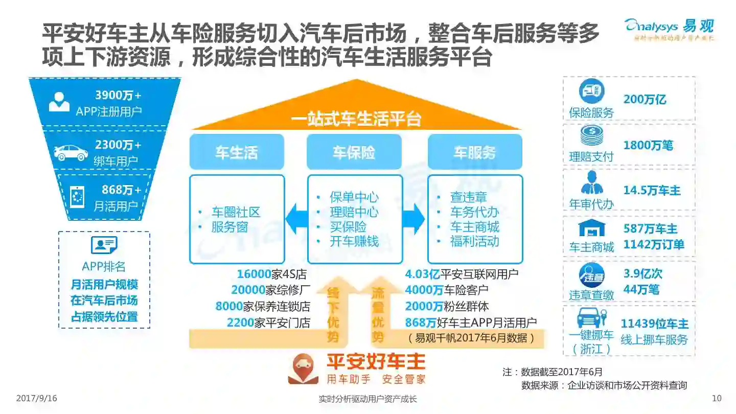易观发布《平安好车主APP价值评级分析》,平安好车主从车险服务出发,轻量化布局汽车后市场,整合多项企业内外部资源,完善服务项目,提高用户体验,形成综合性汽车生活服务平台。