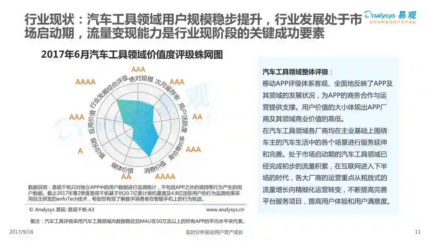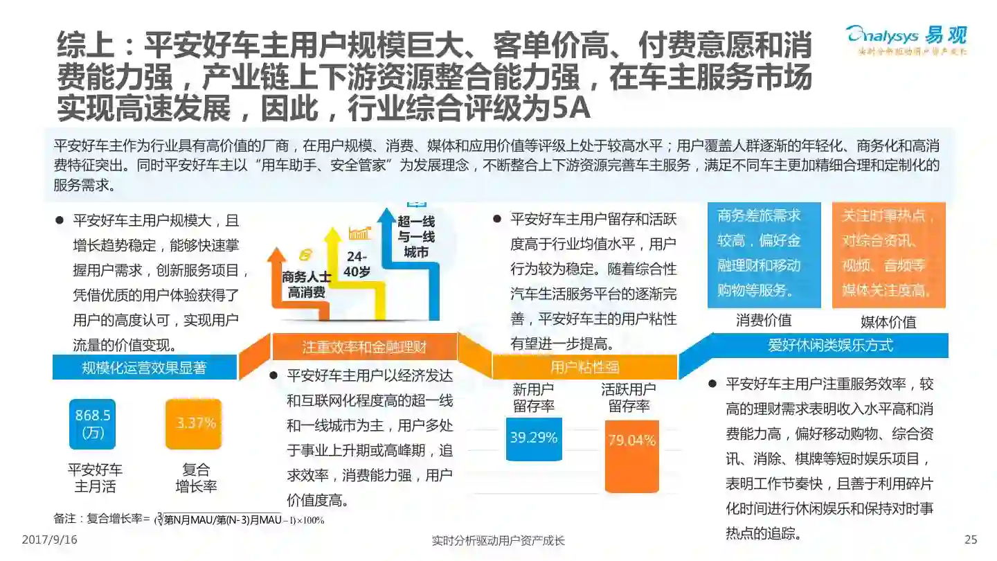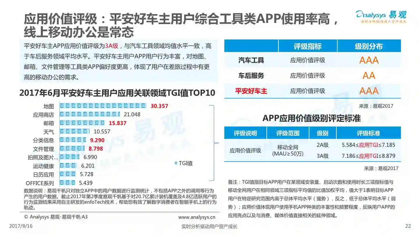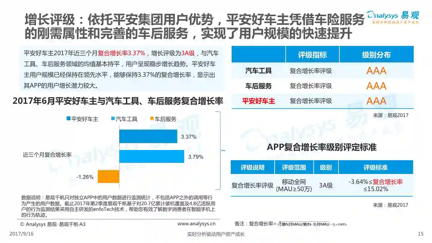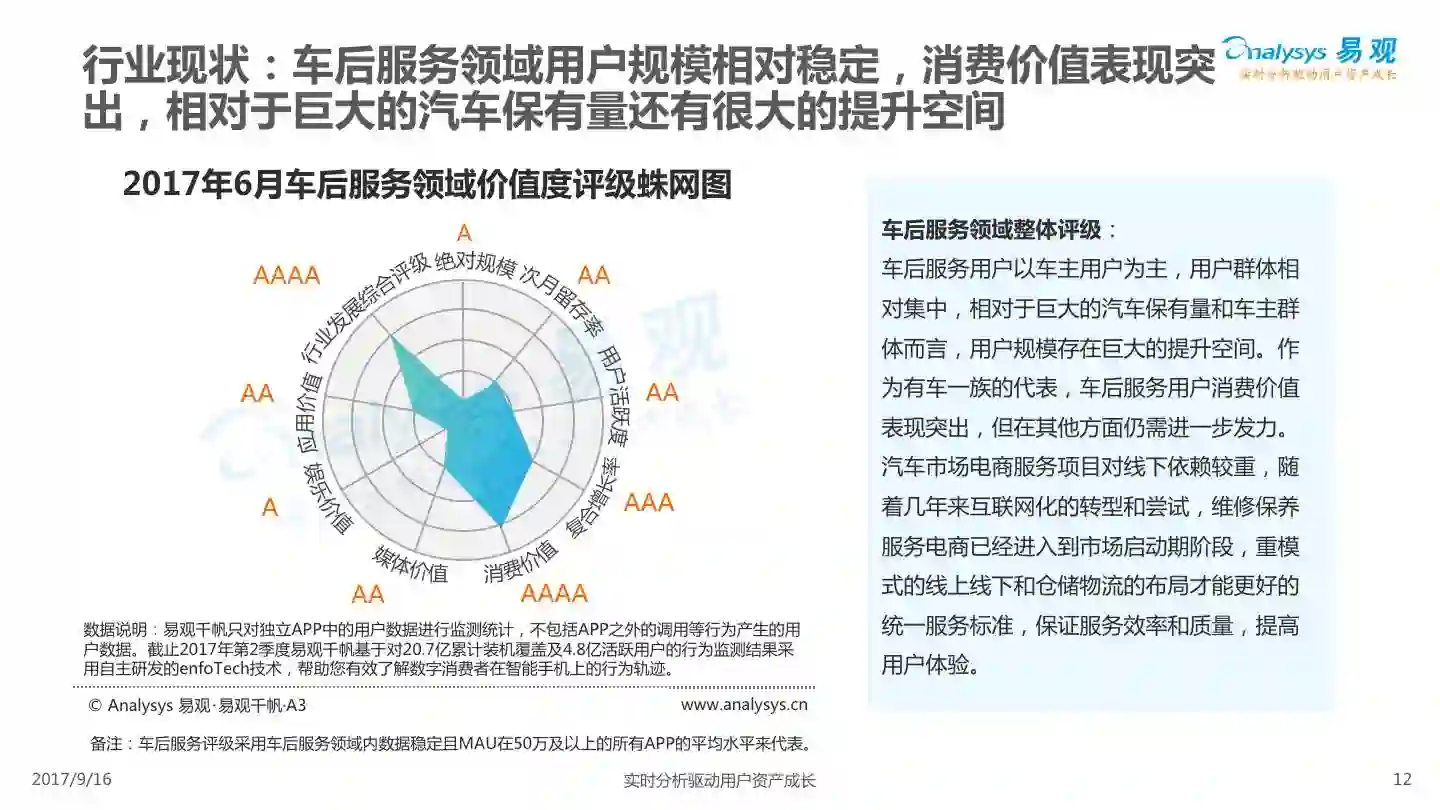 易观发布《平安好车主APP价值评级分析》,平安好车主从车险服务出发,轻量化布局汽车后市场,整合多项企业内外部资源,完善服务项目,提高用户体验,形成综合性汽车生活服务平台。