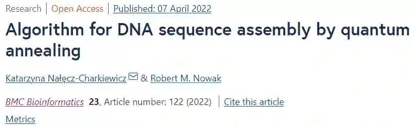 华沙理工大学的研究人员提出了从头组装算法的概念证明,使用基因组信号处理方法,通过计算 Pearson 相关系数来检测 DNA 读数之间的重叠,并将组装问题制定为优化任务(旅行推销员问题)。将在经典计算机上执行的计算与通过结合 CPU 和 QPU 计算的混合方法获得的结果进行比较。为此,使用了 D-Wave 的量子退火器。