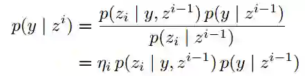 记i帧中像素的标签为y并且它的观测是zi, 根据贝叶斯法则有: