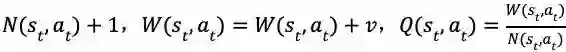 为估计策略 ,把初始状态置为 s,然后开始模拟采样,在状态 s 上采取动作 a,转换到下一个状态,在后续的状态中,依据策略 𝜋 来选择动作,直到到达终止状态,记录下此时的回报。重复执行以上操作。对于路径上的每一个状态-动作对(state-action pair),将所有包含此状态-动作对的模拟的回报的均值作为动作值函数