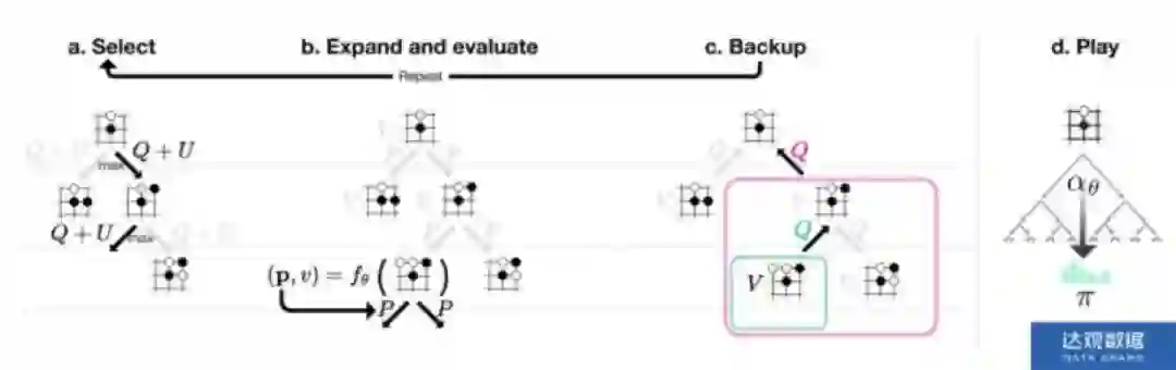 ,然后执行 MCTS…,直到终止状态(游戏结束),将游戏的胜者