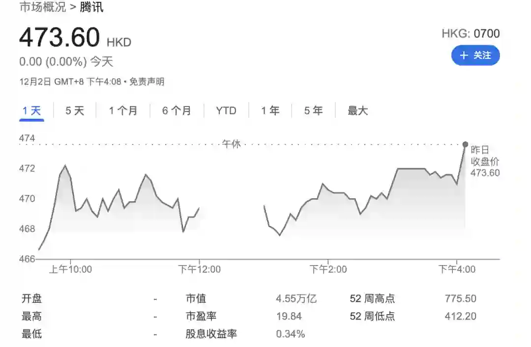 截至12月2日港股收盘,腾讯的股价为473.6港元/股,据此计算,此次奖励股票的总价值约为20.88亿港元。