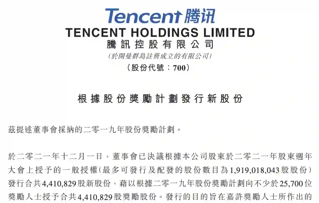 鹅厂推出股票奖励的小心思,在公告里就说明了: