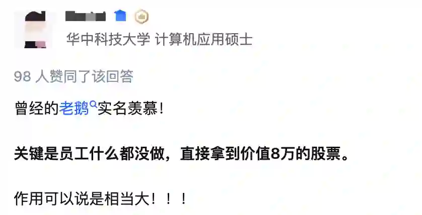 曾经给鹅厂打工的员工表示,「关键是员工什么都没做,直接拿到价值8万的股票。作用可以说是相当大!!!」